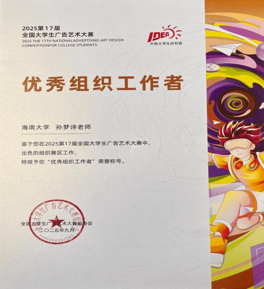 教师、大广赛海南赛区组委会秘书处孙梦诗,因卓越的组织协调能力被授予2025年度“优秀组织工作者”称号;推特视频下载