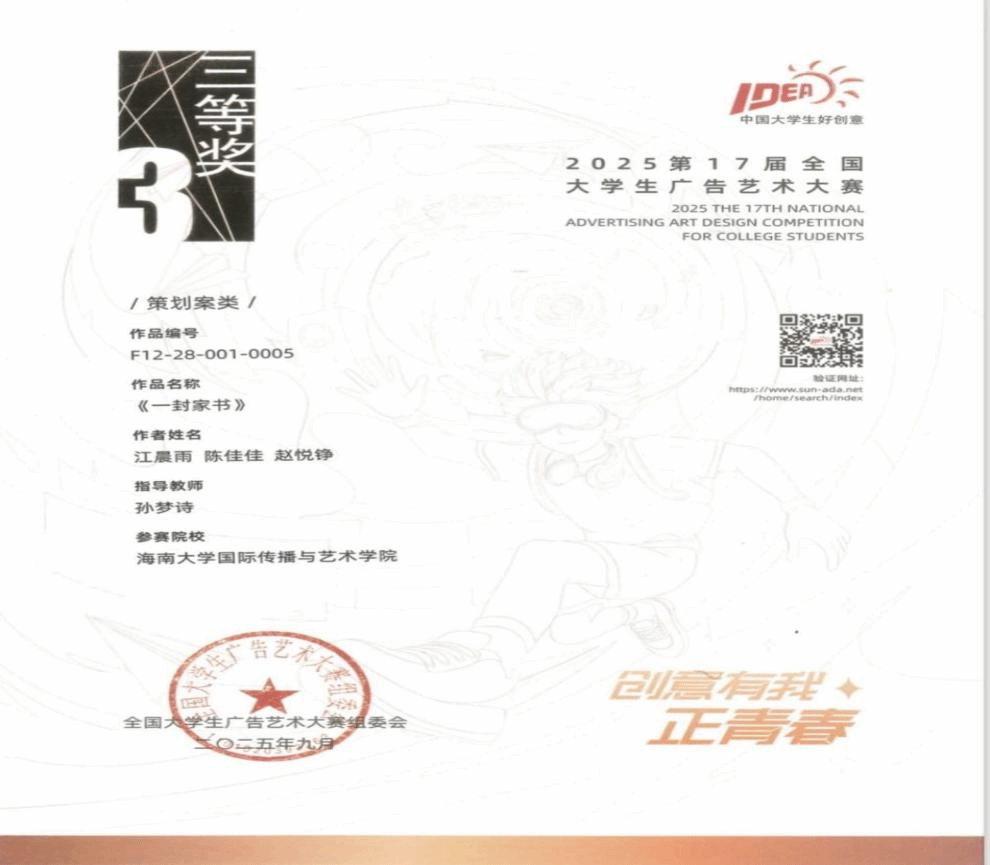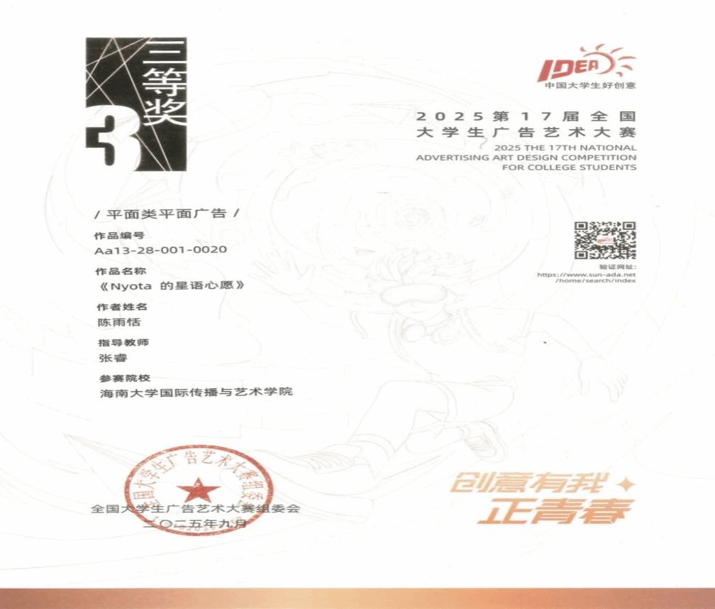 2025年12月6日至7日,第17届全国大学生广告艺术大赛学科竞赛成果展示盛典暨全国大学生广告艺术大赛华彩20周年颁奖典礼在北京政协礼堂隆重举行。本届大赛吸引全国176万名学子参与,收到创意作品58万余组,推特视频下载