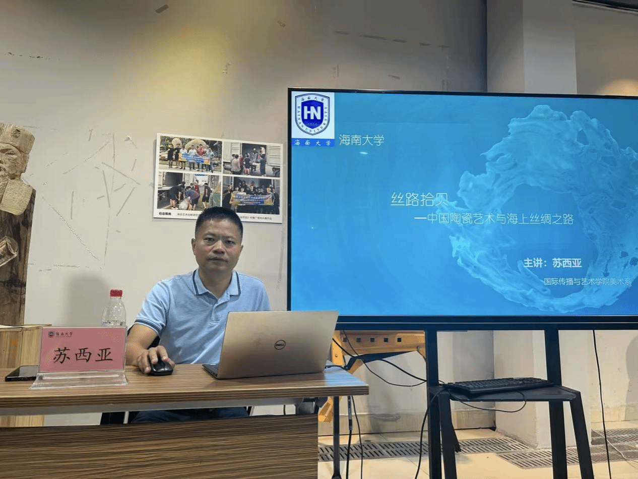 美术系第三期 “艺・思前沿”系列学术讲座圆满举办。本次讲座特邀苏西亚博士担任主讲人,以“丝路拾贝——中国陶瓷艺术与海上丝绸之路”为主题,将中国陶瓷艺术研究与海南“南海更路簿”承载的海洋文明基因有机结合,为现场师生带来了一场兼具跨地域视野与跨时空维度的学术分享。讲座由美术系责任教授包格日乐吐主持,近百名师生到场聆听并参与互动交流。