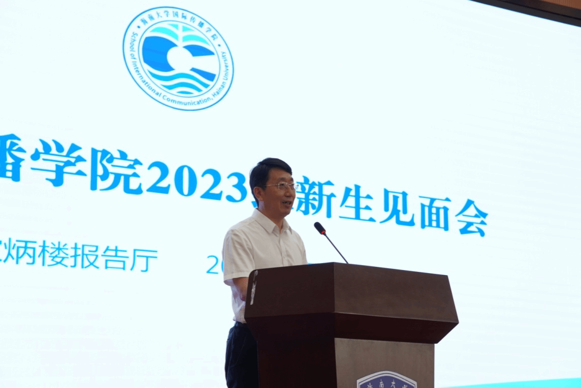 国际传播学院党总支书记谢辉凡主持,学院2023级全体新生参加。