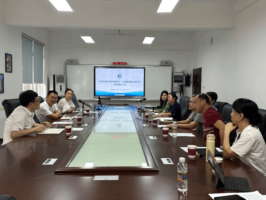 进行科研能力提升与平台建设调研,人文社科处、人事处相关领导,国际传播学院党政领导班子与各学科骨干教授参与座谈,国际传播学院党总支书记谢辉凡主持会议。