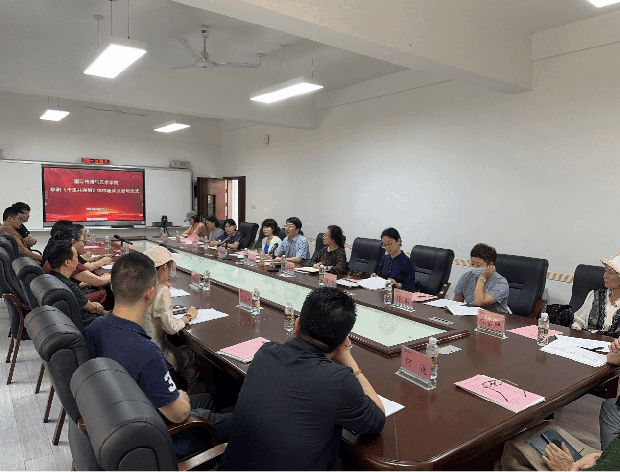 院长郑立波、党委书记何映敏、副院长周琳琳、副书记蒋锐、音乐表演专业责任教授许潇尹、歌剧总导演张海宇、编剧姚小刚、作曲家周虹等主创团队近20人出席本次会议并参与座谈。