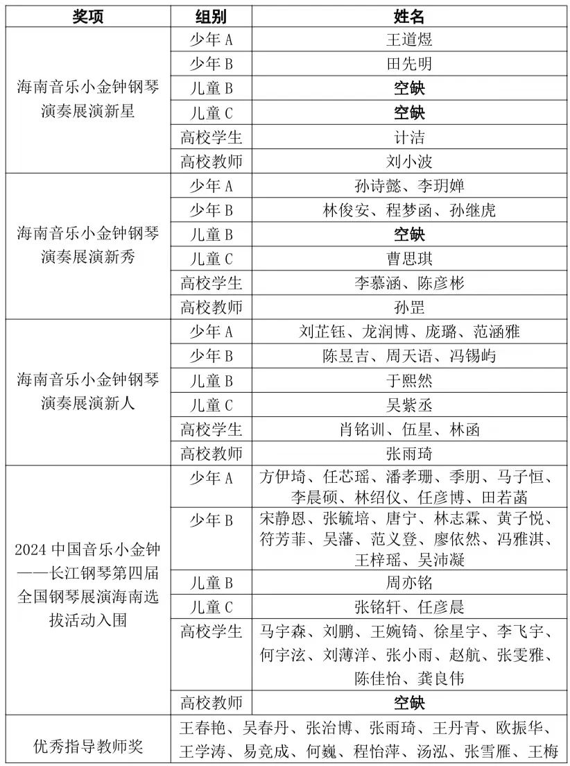 钢琴系五位同学荣获佳绩并将代表海南省进入全国展演活动。