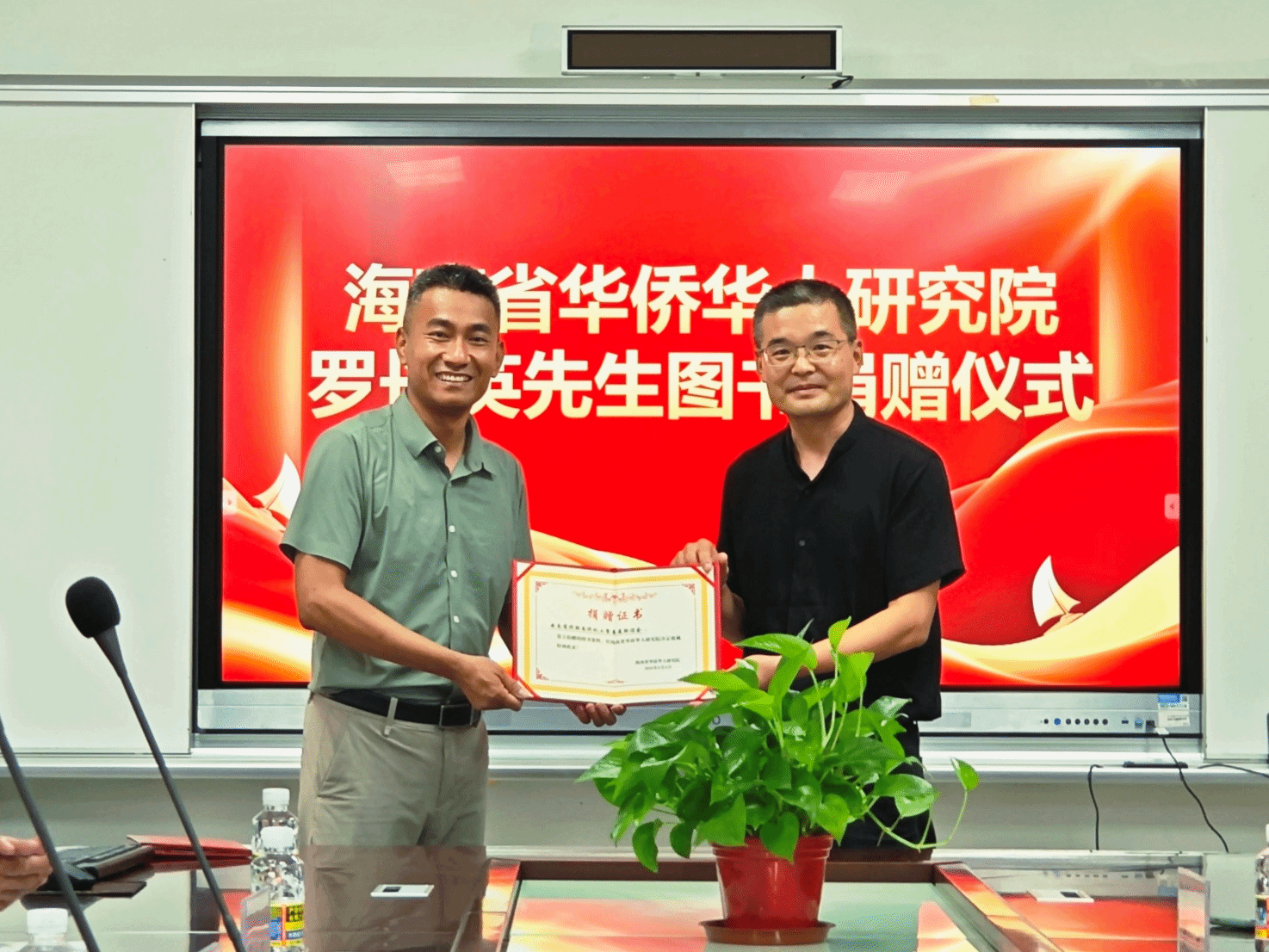 6月4日,海南省华侨华人研究院在田家炳楼举行罗长英先生图书捐赠仪式。研究院秘书长安华涛接受图书捐赠,并向罗长英先生、云南省侨联南侨机工暨眷属联谊会颁发了图书收藏证书。海口市侨联专职副主席苏先智、海口市南侨机工眷属联谊会会长罗长英、海口市南侨机工眷属联谊会理事陈良维、海口市南侨机工眷属联谊会理事罗章信、推特视频下载