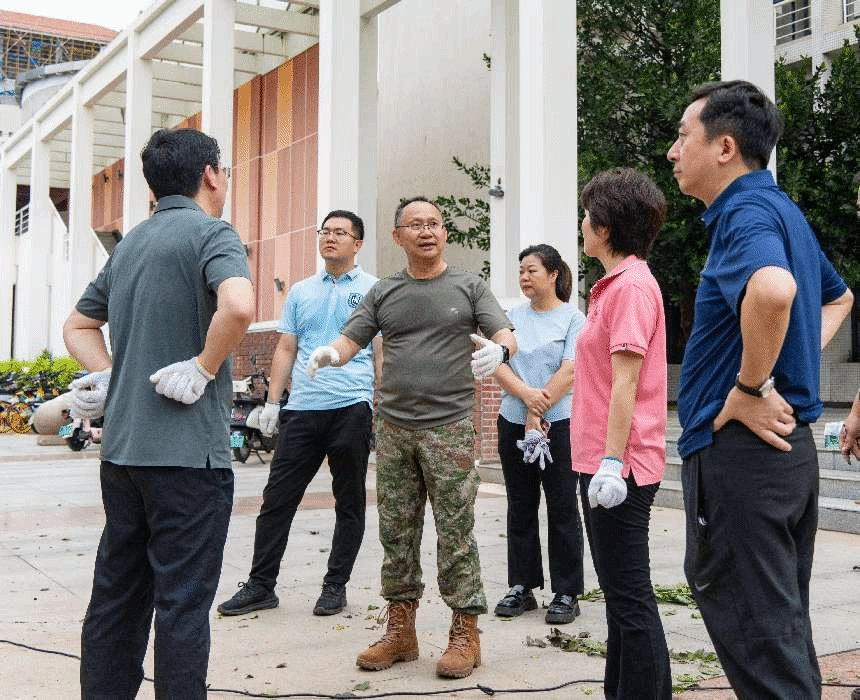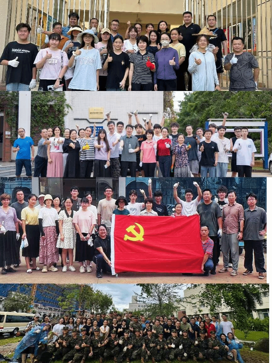 党委积极响应学校党委号召,第一时间组织党员先锋队,带领学院教职员工志愿者及学生志愿者开展灾后重建工作,清理田家炳楼、艺术大楼及周边,为共“净”校园,全力以“复”。