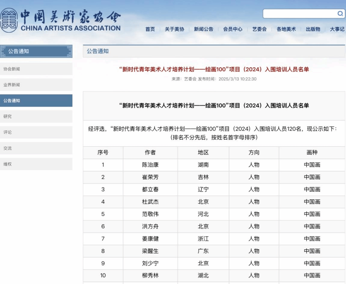 近日,中国美术家协会公布了“新时代青年美术人才培养计划——绘画100”项目(2024)入选人员名单,推特视频下载