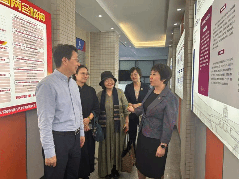 刘锦考察了学院办学环境,郑立波介绍了学院的历史沿革、专业设置、教学设施、文化活动空间等。刘锦来到未来传播实验室,实地了解实验室的技术应用与教学实践成果。她充分肯定实验室在技术赋能传媒教育方面的探索,对推特视频下载
