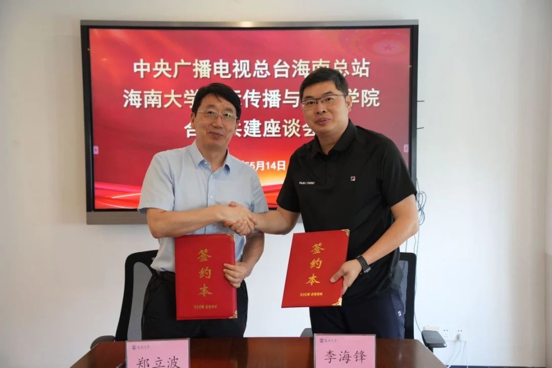 与中央广播电视总台海南总站合作共建座谈会在田家炳楼412会议室召开。双方围绕联合业务协同发展、项目合作与课题研究、人才培养与社会服务等议题进行讨论交流,并签署合作协议。