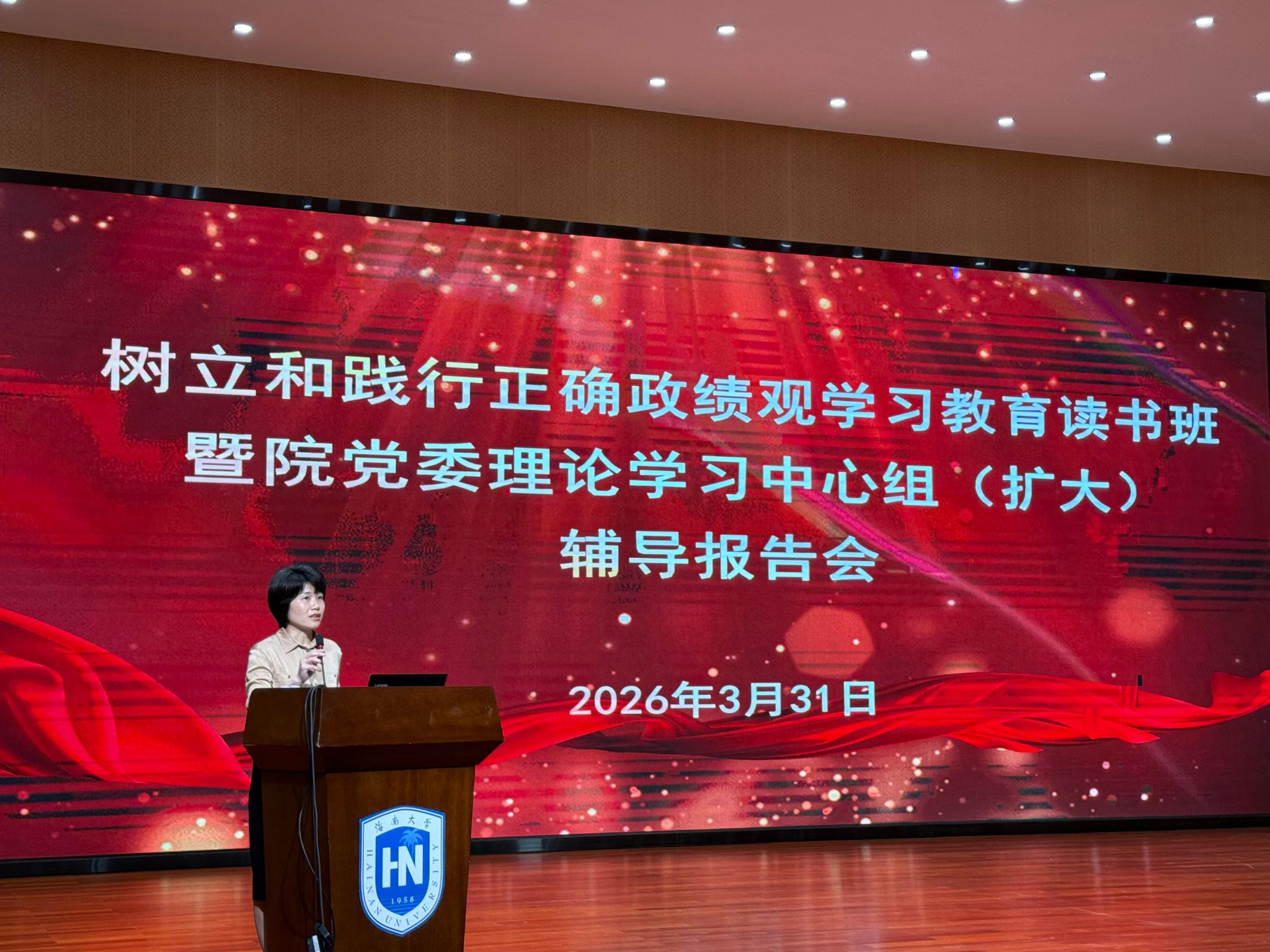 党委在田家炳楼二楼报告厅举办树立和践行正确政绩观读书班暨院党委理论学习中心组(扩大)专题辅导报告会,学院全体中共党员、民主党派和无党派人士代表参加本次报告会。报告会特邀马克思主义学院教授宋增伟作专题辅导。