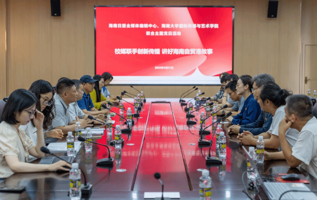 教工党支部及学生党员代表与海南日报全媒体编辑中心新媒体部党支部联合开展主题为“校媒联手创新传播 讲好海南自贸港故事”的党日活动,通过“观摩学习+座谈交流”的形式,以党务促业务,研讨深化校媒合作,共探技术驱动下的创新传播。